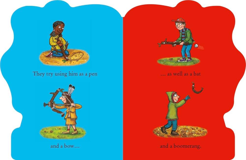 Sağlam karton sayfalar, Stick Man dünyasına küçük okurlar için mükemmel bir giriş sunar.