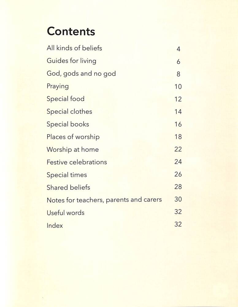 Her türlü inanç vardır. İnsanlar Budist, Hristiyan, Hindu, Yahudi, Müslüman ya da Sih olabilir ya da başka dinlere mensup olabilirler. Bazı insanların ise dini inançları yoktur. Ne giydiğimiz, ne yediğimiz, nasıl davrandığımız ve başkalarına nasıl davrandığımız, inançlarımızı gösterme biçimimiz olabilir. Senin inançların neler?