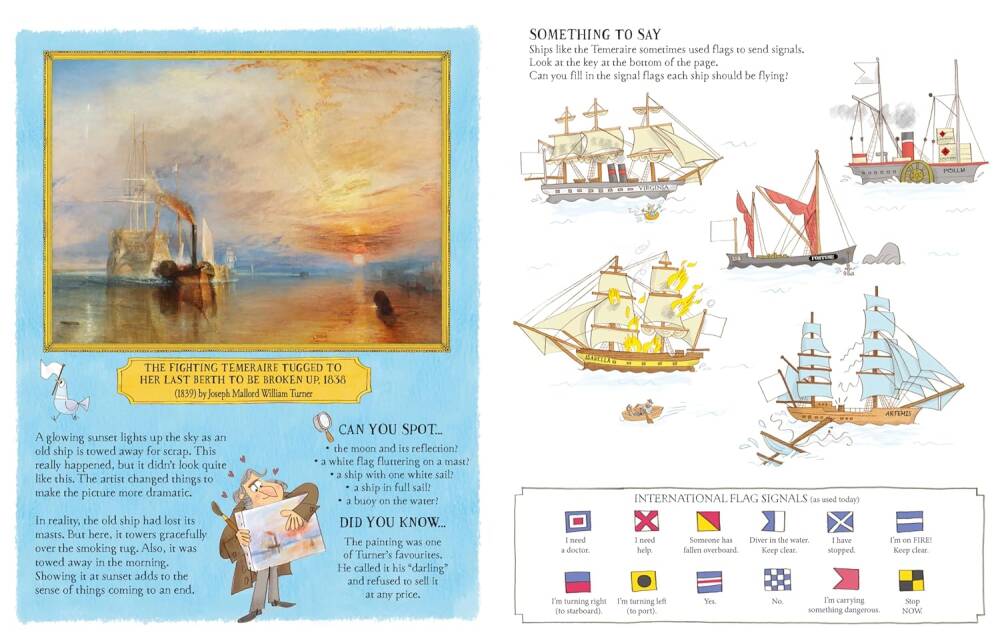 Ünlü tabloların seçkisi ve eğlenceli bulmacalar içerir. Her tablo tam renkli olarak yeniden basılmış, ilginç bilgiler ve fark edilecek detaylarla birlikte sunulmuş ve ardından bir bulmaca sayfasıyla devam etmektedir. Bu bulmacalar arasında labirentler, eşleştirme, sayılara göre boyama, fark bulma, şifreler, desenler, mantık bulmacaları ve daha fazlası yer alır – başlamanız için tek ihtiyacınız olan şey bir kurşun kalem. Londra’daki National Gallery iş birliğiyle yayımlanmıştır.