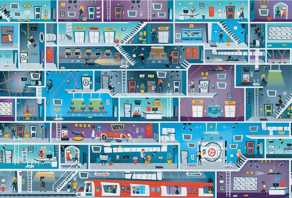 En gizli üsleri ele geçirmekten yüksek hızlı kovalamacalardan kaçmaya kadar, çocuklar bu ilgi çekici kitap ve yapboz seti ile her türlü casus görevini tamamlamaktan keyif alacak. Gelecek vadeden gizli ajanlar için mükemmel bir hediye olan şık ve sağlam kutuda, tamamlandığında heyecan verici bir casus labirenti içeren 300 parçalık bir yapboz ve keyifle çözebilecekleri daha fazla labirent bulmacasıyla dolu 32 sayfalık bir kitap bulunuyor. Yapbozun tamamlanmış boyutu: 59 x 44 cm