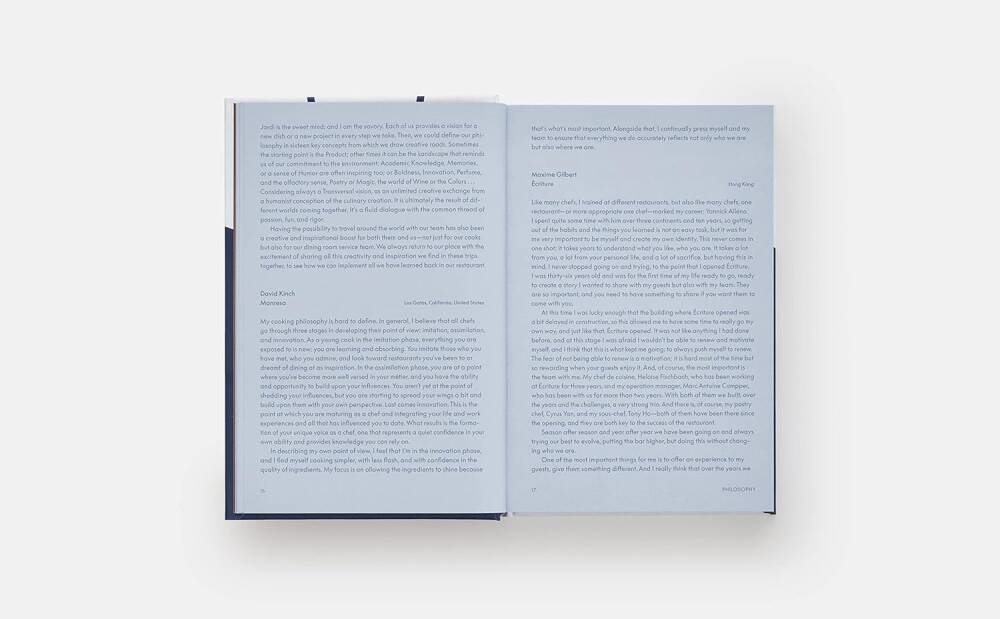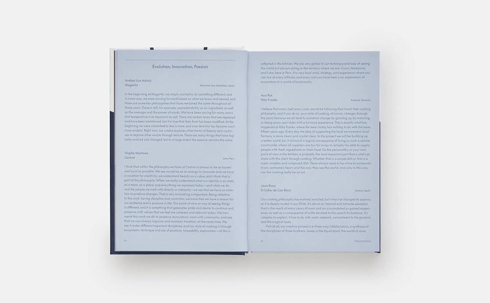 Kitapta yer alan şefler arasında Massimo Bottura, Jeremy Chan, Tom Colicchio, Nina Compton, Wylie Dufresne, Suzanne Goin, Enrique Olvera, Eric Ripert, Clare Smyth, Jean-Georges Vongerichten ve Alice Waters gibi isimler bulunuyor.