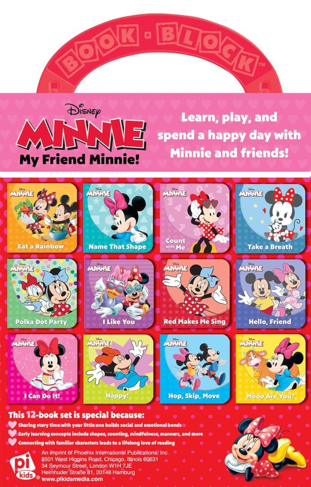 Minnie Mouse ve arkadaşlarıyla birlikte şekiller, şarkılar, sayma ve dostluk gibi konuları keşfedin! Bu taşınabilir kütüphane, küçük eller için mükemmel boyutta 12 sağlam karton kitaptan oluşur ve miniklere okumayı sevdirmenin yolunu açar. Kitaplar, taşıma kulplu pratik bir kutuda sunulur; böylece eğlence her zaman yanınızda!