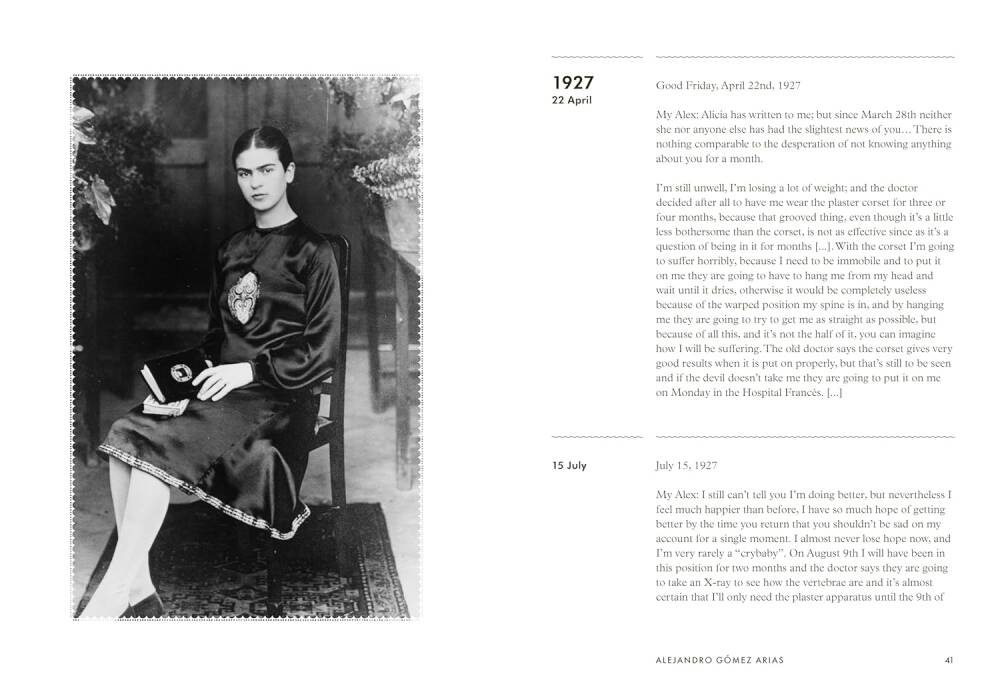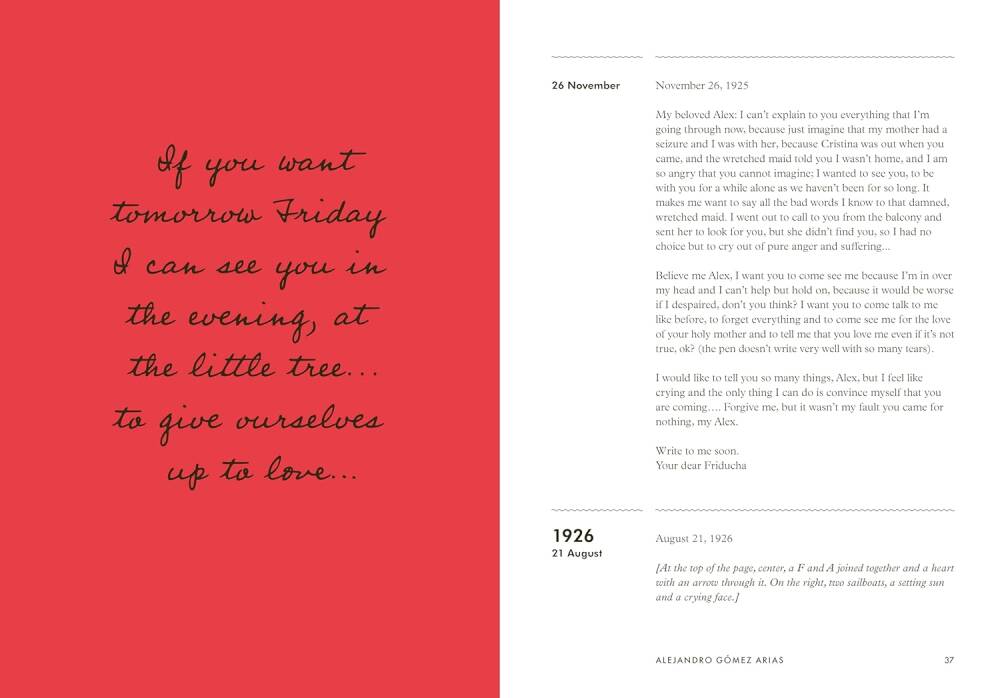 İlk aşkı Alejandro Gomez Arias’a ve eşi Diego Rivera’ya yazdıklarının yanı sıra Julien Levy, Nickolas Muray ve Jose Bartoli gibi isimlere gönderdiği mektuplar da bulunuyor. Bir araya geldiklerinde, Frida’nın kişisel dünyasına son derece yakın bir bakış sunarken yaratıcı yönünün farklı bir yüzünü de ortaya çıkarıyorlar.