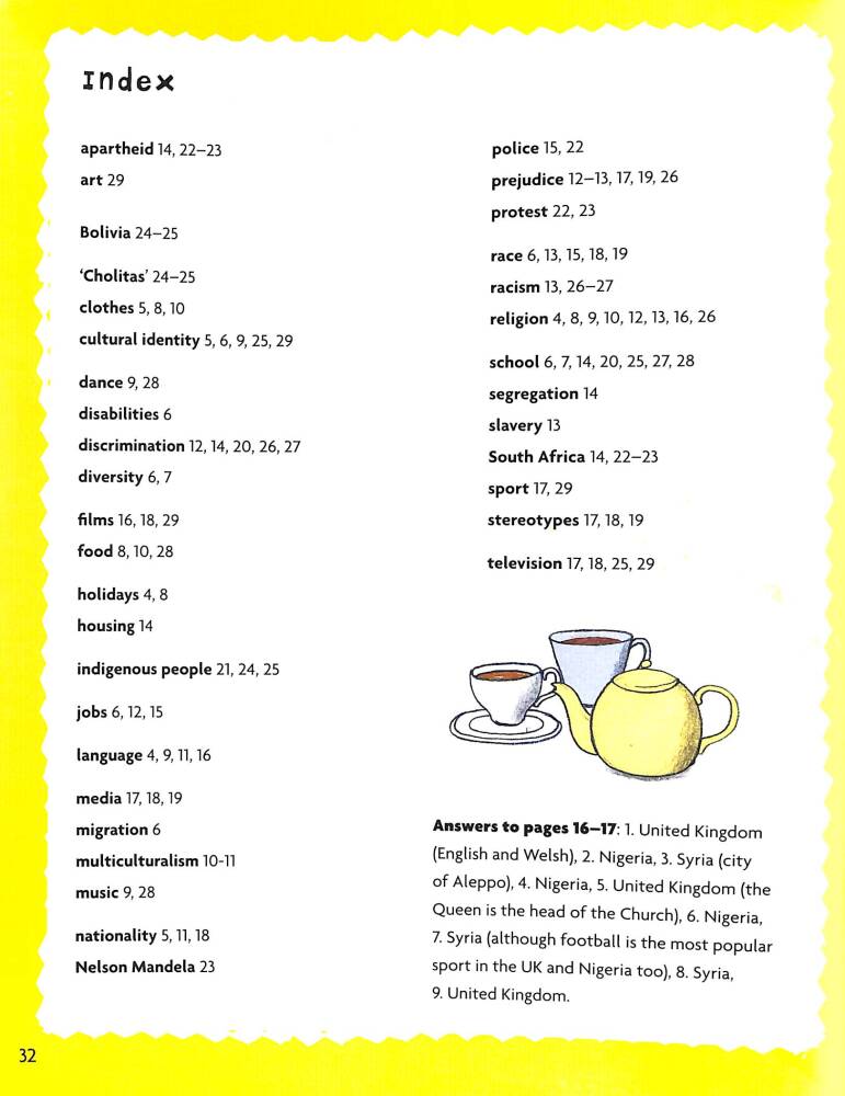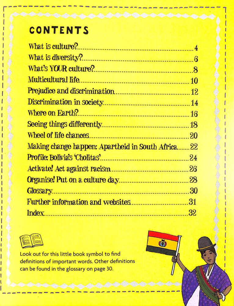 İyi bir küresel yurttaş nasıl olunur? Yaşadığımız dünyayı anlayarak ve değişimi nasıl mümkün kılabileceğimizi öğrenerek. Bu kitap, günümüz yaşamında çeşitlilikle ilgili meseleleri inceler; çokkültürlülüğün olumlu yönlerinden önyargı, ırkçılık ve ayrımcılığa kadar birçok konuyu ele alır. Kitapta ayrıca Apartheid rejimi üzerine bir örnek olay ve ırkçılığa karşı nasıl harekete geçebileceğimize dair fikirler yer alır.