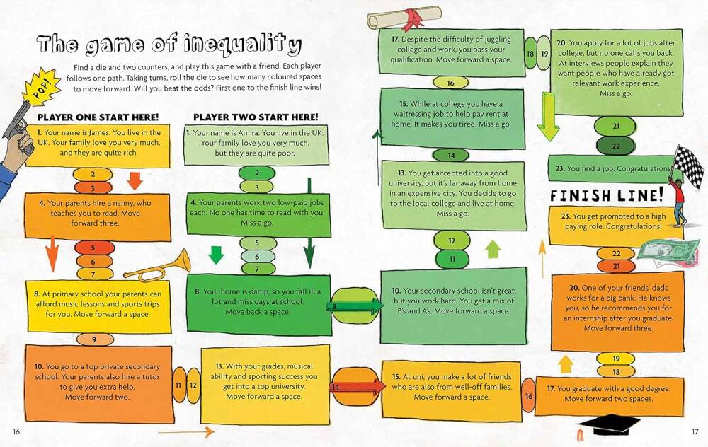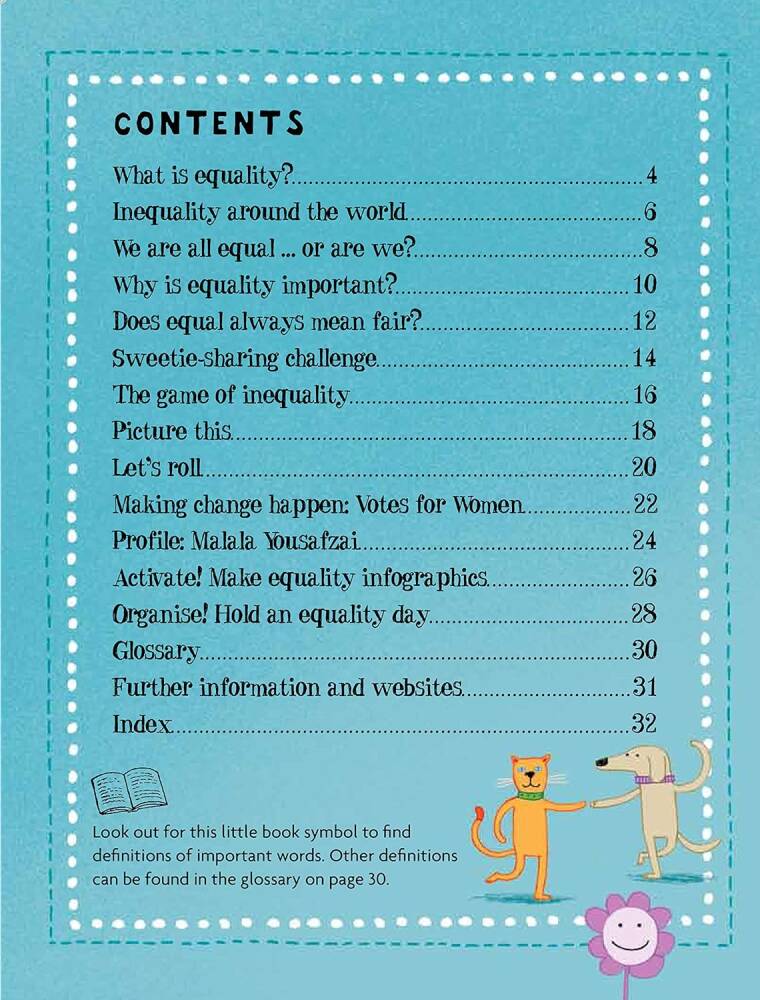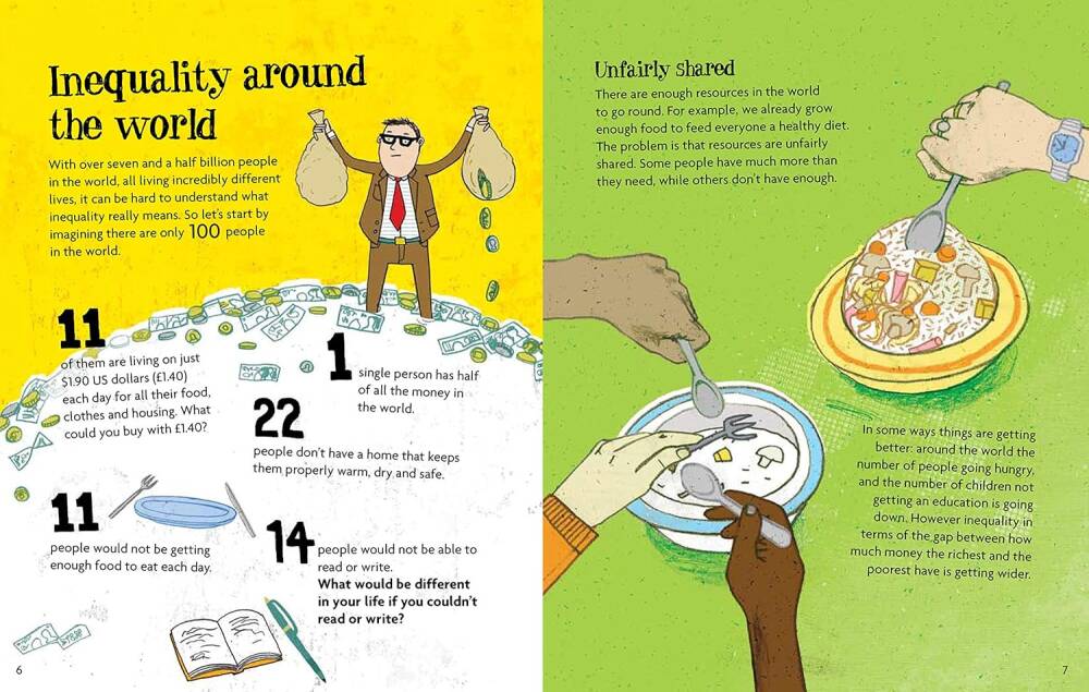 İyi bir küresel yurttaş nasıl olunur? Yaşadığımız dünyayı anlayarak ve değişimi nasıl mümkün kılabileceğimizi öğrenerek. Bu kitap, kaynakların adaletsiz paylaşımından ırk ve toplumsal cinsiyetin neden önemli olduğuna kadar dünya genelindeki eşitsizlikleri inceliyor. Kadınlara oy hakkı kampanyası ve Malala Yousafzai’nin çalışmaları gibi örnek olaylarla eşitsizliğe nasıl karşı çıkabileceğimizi gösteriyor.