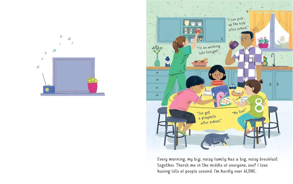 Küçük kız, babası hemen yan odada olsa da evde bir odada yalnız bırakılmaktan hoşlanmaz. Hikâye, küçük kızın bakış açısından anlatılır ve genç çocuklar arasında yaygın olan bu kaygıyı nazik ve esprili bir şekilde işler; okuyucunun benzer korkularını hafifletebilecek güzel ve rahatlatıcı bir sonla tamamlanır. Kitap boyunca lazer kesim delikler, onun yalnızlık hissini ve babasıyla olan bağlılığını vurgular. Muhteşem ve karakter dolu illüstrasyonlar, küçük kızı ve ailesini sıcak bir şekilde hayata geçirir.
