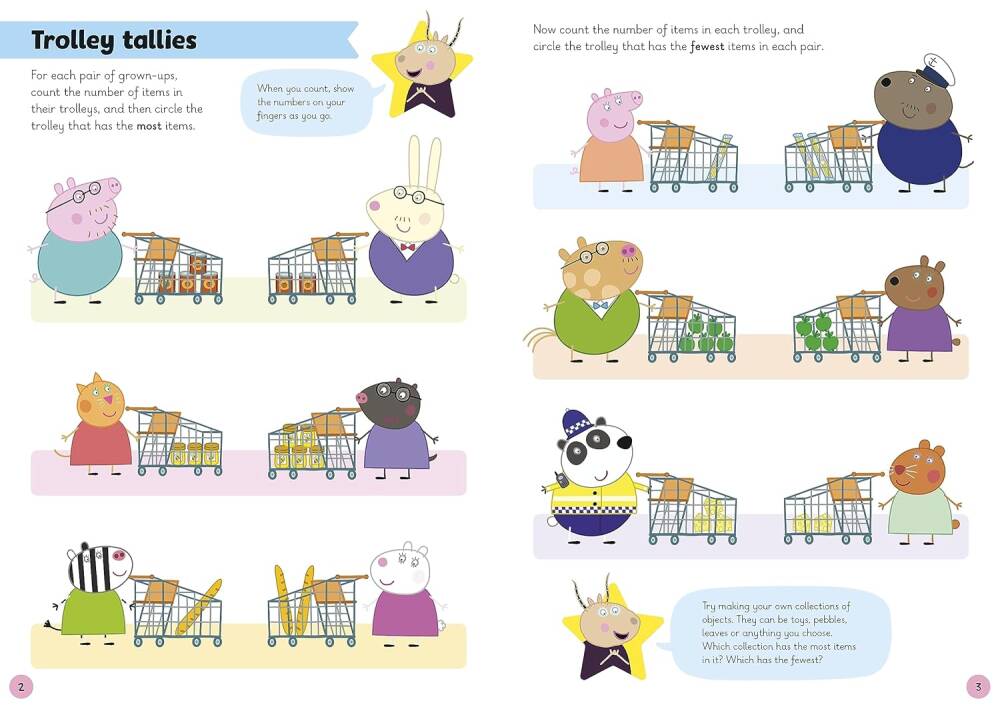 Learn with Peppa silinebilir ve çıkartmalı etkinlik kitapları, harfler, sayma, şekiller ve sayılar gibi temel erken öğrenme konularına odaklanır ve çocukların kendi duygularını ve önemli ilişkileri fark etmelerini destekler.