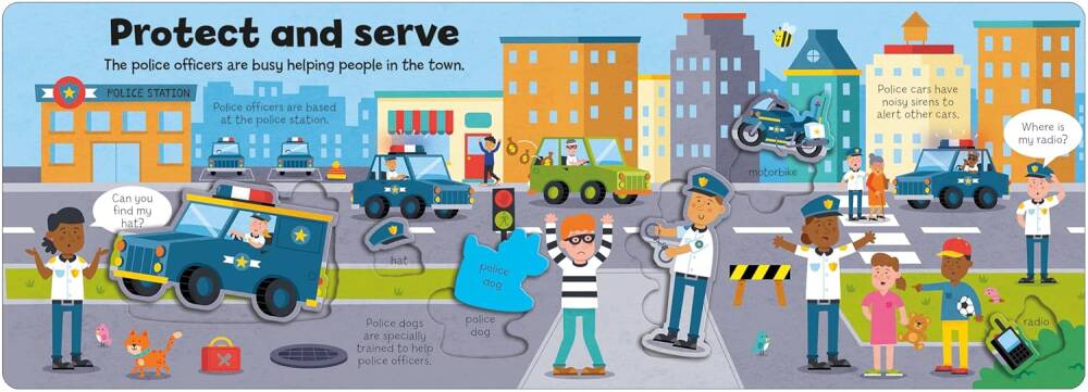 Bu fantastik yenilikçi format, üç yaş ve üzeri çocuklar için tasarlanmıştır. Her bir resimli sayfa, itfaiyecilerden polis memurlarına, sahil koruma görevlilerine ve daha fazlasına kadar bize yardım eden farklı insanlar hakkında bilgi edinirken çocukların keşfedebileceği şeylerle doludur.