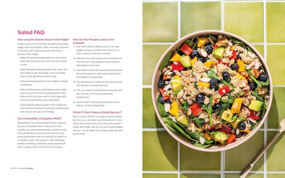 Life-Changing Salads sadece bir yemek kitabı değil—özlemini duyacağınız, tatmin edici bitki bazlı salatalar oluşturmanız için hazırlanan nihai rehber. Kıtır kıtır doğranmış salatalardan sıcacık kaselere, doyurucu salata dürümlerinden kinoa gücüyle dolu tabaklara ve hatta (yemek hazırlığı için mükemmel olan) marulsuz salatalara kadar her türlü salata ihtiyacı burada!