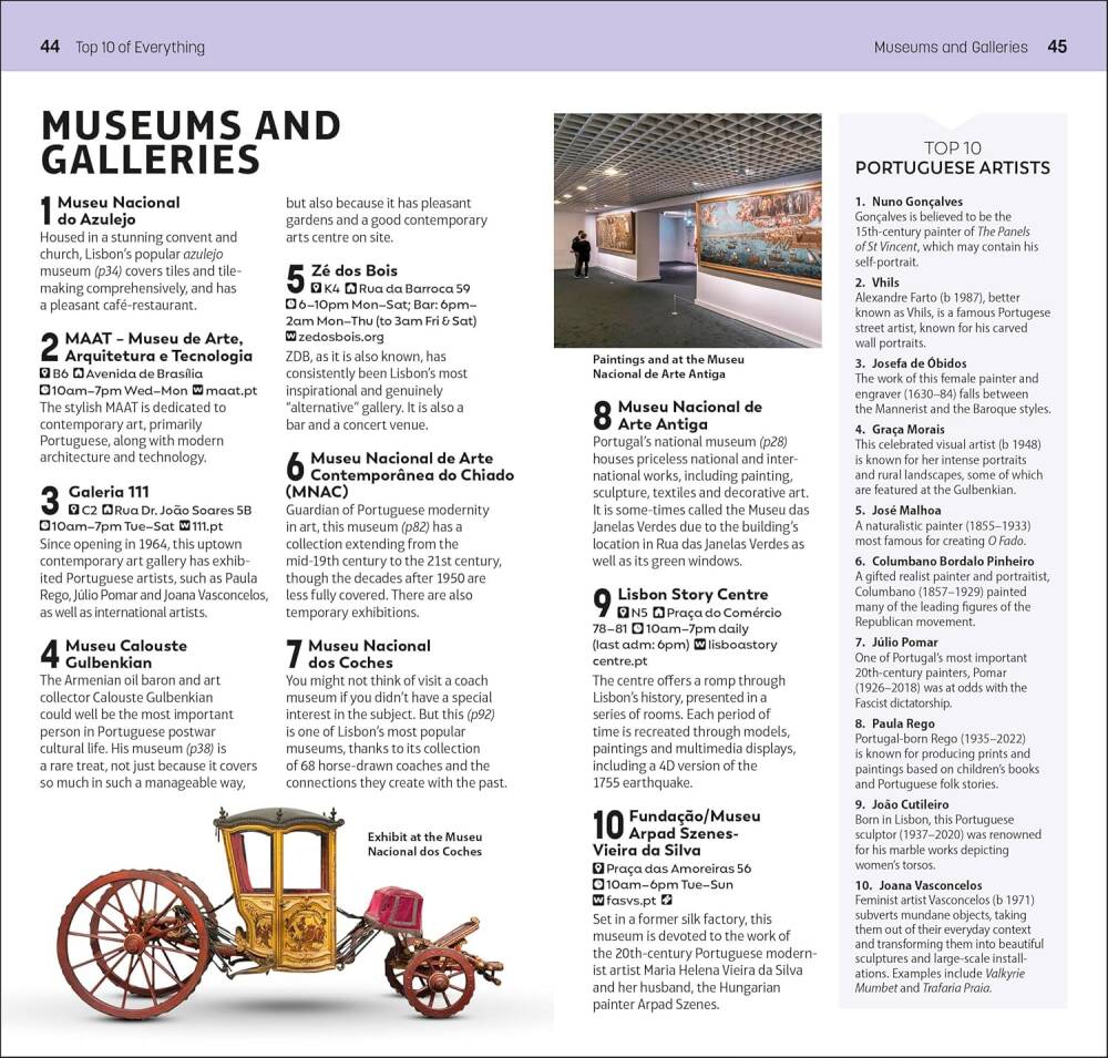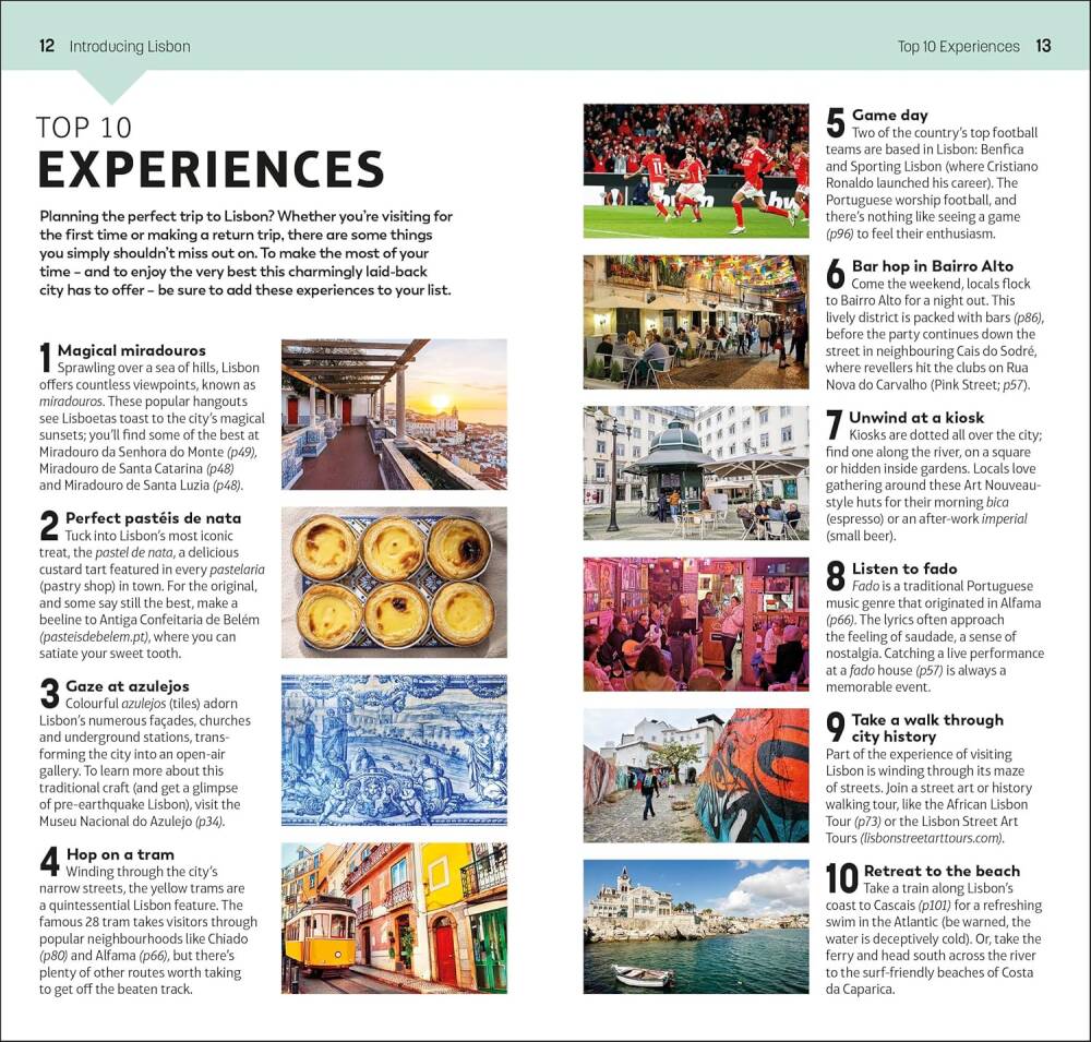 Sintra’yı ziyaret etmek, Bairro Alto’da bar turuna çıkmak ve Lizbon’un kıvrımlı sokaklarında sarı tramvaya binmek dahil olmak üzere Lizbon’un mutlaka görülmesi gereken yerleri ve yapılması gereken aktiviteleri içeren Top 10 listeleri