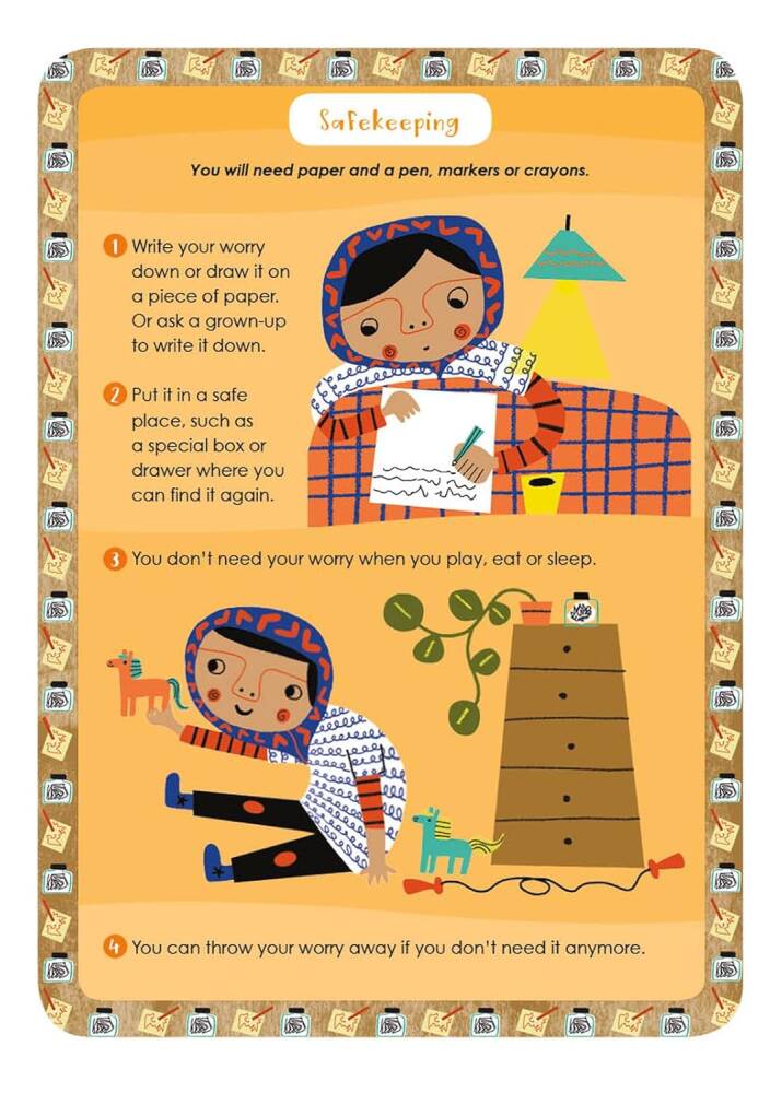 Bu kutulu kart destesi, çocukların kendilerini sakin hissetmelerine, odaklanmalarını artırmalarına, sevgi dolu şefkati uygulamalarına ve rahatlamalarına yardımcı olacak 50 yaratıcı farkındalık oyunu, görselleştirme ve egzersiz içerir. Kartların her iki tarafındaki renkli ve eğlenceli illüstrasyonlar, her uygulamayı adım adım takip edilebilecek şekilde açıklar. Bireysel kartlardaki ipuçları ve 8 sayfalık talimat kitabı, bu etkinlikleri tüm yeteneklere sahip çocuklar için erişilebilir hale getiren uyarlamaları gösterir.