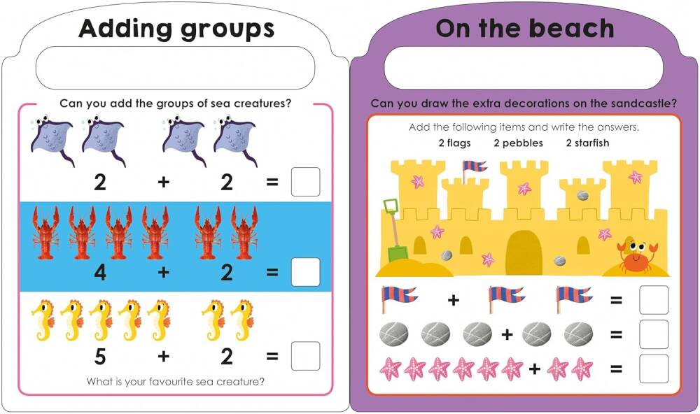 Bu sert kapaklı kitap, basit talimatlar ve aktiviteler içerir ve küçük çocukların okuma, yazma ve matematik becerilerini geliştirmelerini teşvik eder. Tutacaklı şekli ve cesur, renkli tasarımı ile eğlenceli bir öğrenme aracıdır ve silinebilir sayfaları sayesinde çocuklar defalarca pratik yapabilir. Hatta kendi kuru silinebilir kalemiyle birlikte gelir.