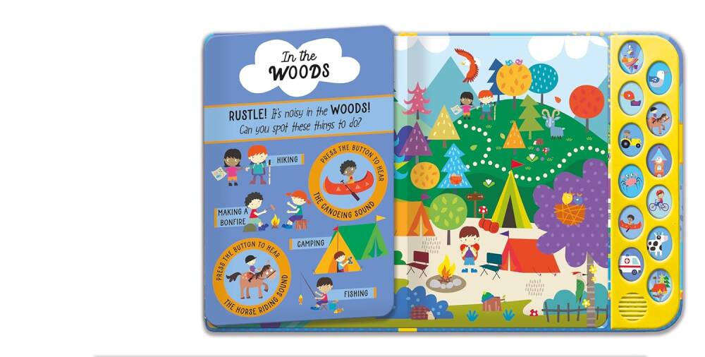 Bakın, dinleyin ve bu güzel 12 düğmeli sesli kitapta hangi hayvanları bulabileceğinizi görün! 5 hareketli sahnesiyle bu kitap, saatlerce eğlence sunacak.