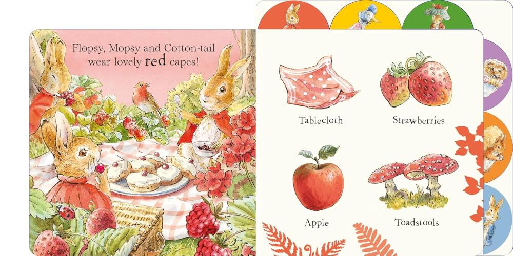 Bu yeni sekmeli karton kitap, küçük çocukları tanıdıkları tüylü arkadaşları Peter Rabbit ile ormanı keşfederken gökkuşağının tüm renkleriyle tanıştırıyor.