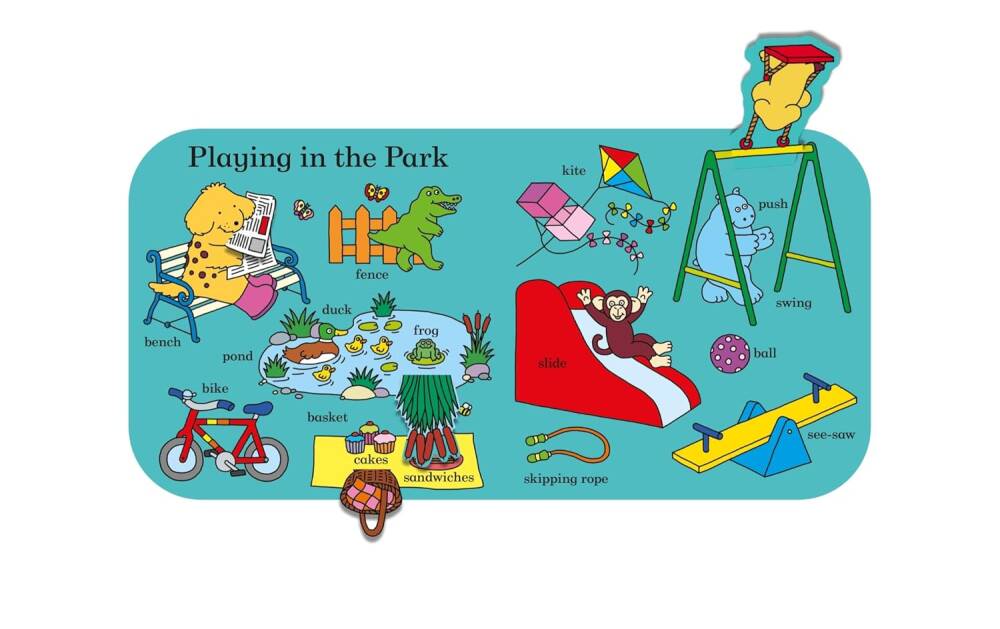 Spot, ailesi ve arkadaşlarıyla parka, sahile, oyun alanına ve daha pek çok yere maceraya çıkıyor. Yol boyunca 100 temel kelimeyi keşfedin.