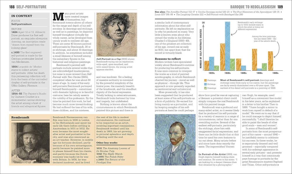 Bu rehber, Van Gogh, Rembrandt, Klimt, Matisse, Picasso ve daha onlarca ustanın başyapıtlarını ilham veren fikirleri inceliyor. Önemli sanat akımlarını öğrenmenin zor olduğunu düşünüyorsanız, The Art Book temel bilgileri net bir düzenle sunuyor. Konu, teknik ve malzemeleri öğrenin; büyük eserlerin arkasındaki yetenekli sanatçılar hakkında süper zihin haritaları ve adım adım özetlerle bilgi edinin.
