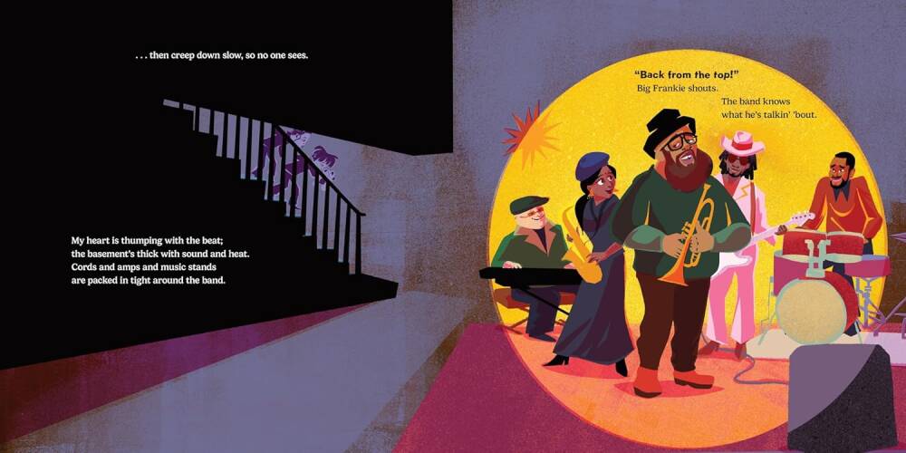 Bu eğlenceli ve kafiyeli resimli kitapta, yatmaları gereken iki kardeş, bodrumda bir caz grubunun çaldığını keşfeder.
