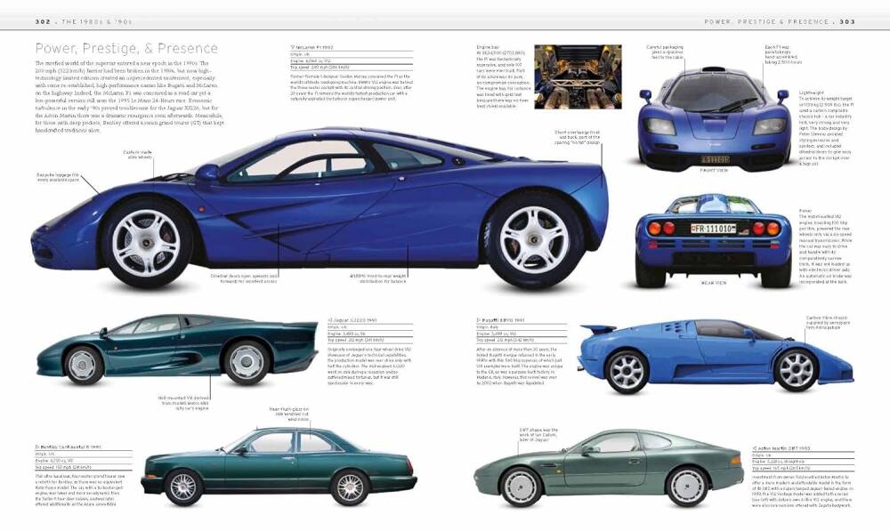 Kitabın kapsamını genişleten özellik sayfaları; tasarımcılar ve üreticilerden modellerin on yıllar boyunca geçirdiği evrime kadar her şeyi kapsıyor.