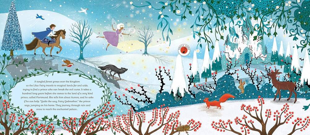 Kral ve Kraliçe’nin yeni doğan kızları Prenses Aurora için düzenledikleri büyük kutlamaya katılın. Fakat davetsiz bir misafir gelip prensesi lanetleyince, krallık bu laneti bozacak tek özel kişiyi bulmak zorunda kalır… Jessica Courtney-Tickle’ın büyüleyici illüstrasyonları eşliğinde ilerlerken siz ve çocuğunuz, balesinden seçilmiş 10 müzik parçasını dinlemek için düğmelere basacaksınız.