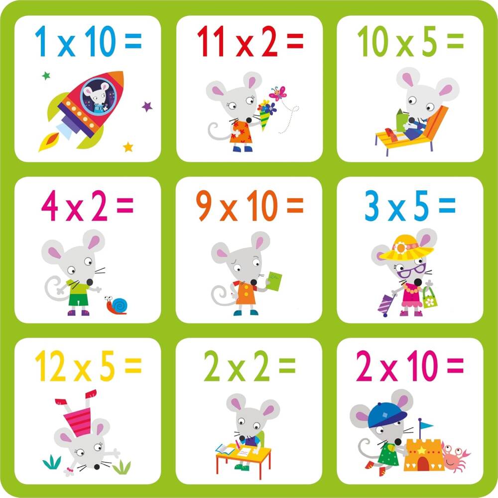 Bu, 2-5 oyuncu için eğlenceli oyunlar, çocukların ilk çarpım tablolarını öğrenmelerine yardımcı olacak. Kutu, 4 bingo tahtası, 36 kart ve bir kitap içeriyor; çocuklar önce kitaptan 2, 5 ve 10 çarpım tablolarındaki sayılar hakkında bilgi edinebilir, ardından tahtalar ve kartları kullanarak iki farklı oyun oynayabilirler. Oyun talimatları kitabın sonunda yer almaktadır.