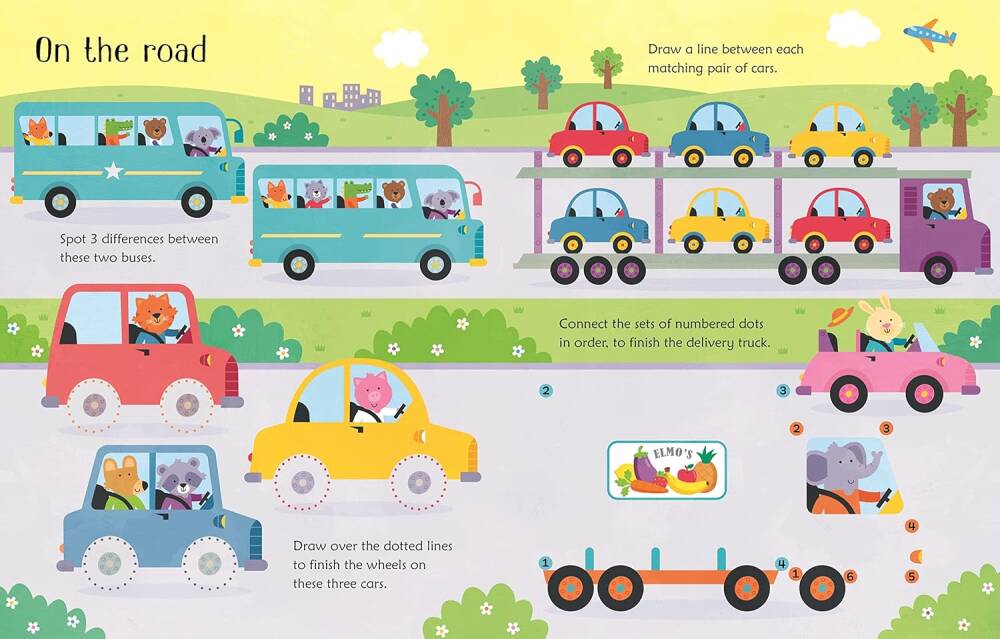 Hayvan dostlara katılın ve her türlü heyecan verici aracı keşfedin. Özel kalemi kullanarak labirentleri çözün, noktalı çizgileri takip edin, noktalardan resimleri tamamlayın ve farkları bulun; ardından sayfaları silin ve hepsini tekrar yapın. Bu eğlenceli kitap, küçük çocukların önemli sayma, gözlem ve kalem kontrolü becerilerini geliştirmeleri için mükemmel bir yoldur.
