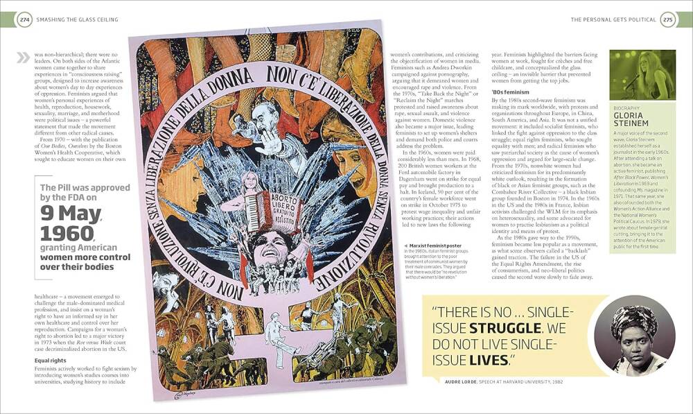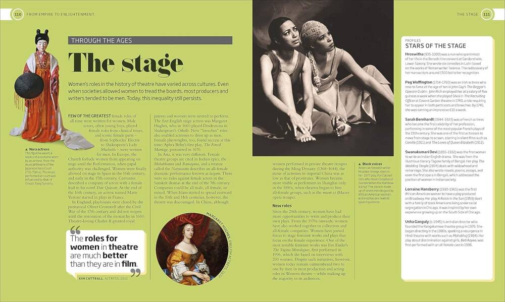 Etkileyici görsellerle dolu bu görkemli kitap, kadın tarihindeki kilit olayları gözler önüne seriyor: erken matriarkal toplumlardan kadınların oy hakkına, Suffragette hareketine, 20. yüzyıl feminizmine ve cinsiyet politikalarına, günümüzdeki #MeToo ve Uluslararası Kadınlar Günü gibi hareketlere kadar; kadınların geçmişimizi şekillendirmedeki kritik rolünü vurguluyor.
