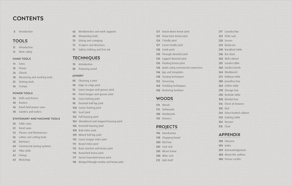 Bu kitapta, marangozlukla ilgili pek çok teknik ve ipucu yer alıyor. Önce testereler, keskiler, ölçme ve işaretleme araçları gibi doğru aletleri tanıyacak, ardından ahşap işleme tekniklerine, sert ve yumuşak ağaç türlerine ve kaplamalara dair bilgilere hakim olacak, sonrasında ise öğrendiklerinizi sınayabileceğiniz projelere geçeceksiniz.