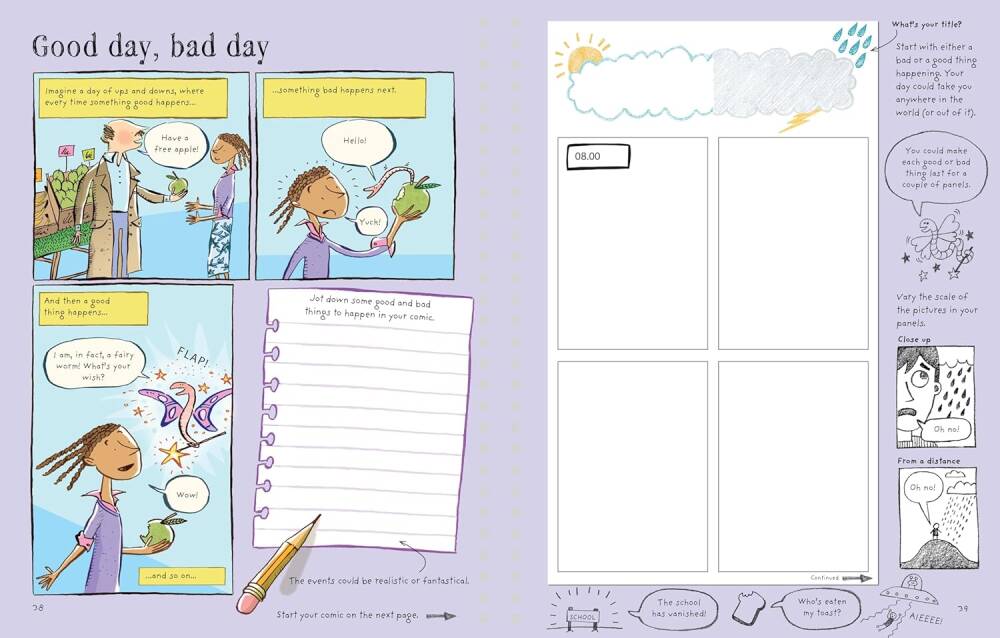 Kapow! Boom! Çizgi roman yapmaya başlamak isteyen herkes için harika bir etkinlik kitabı. Çocukların doldurabileceği bol alan içerir ve konuşma balonları ile ses efektlerini kullanarak grafik hikayelerini planlamalarına ve düzenlemelerine yardımcı olacak basit adım adım talimatlar sunar. Karakter ve hikaye fikirleri, örnek çizgi roman şeritleri ve çizim ipuçları da içerir.